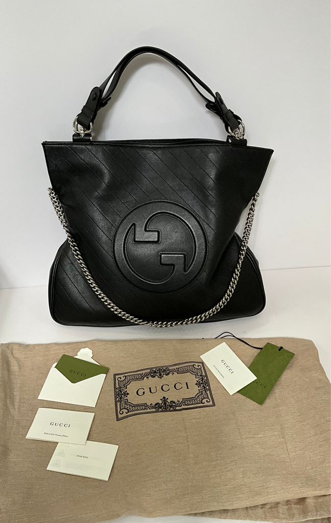 GUCCI SAKAI BLONDIE MEDIUM LEATHER TOTE BAG BLACK