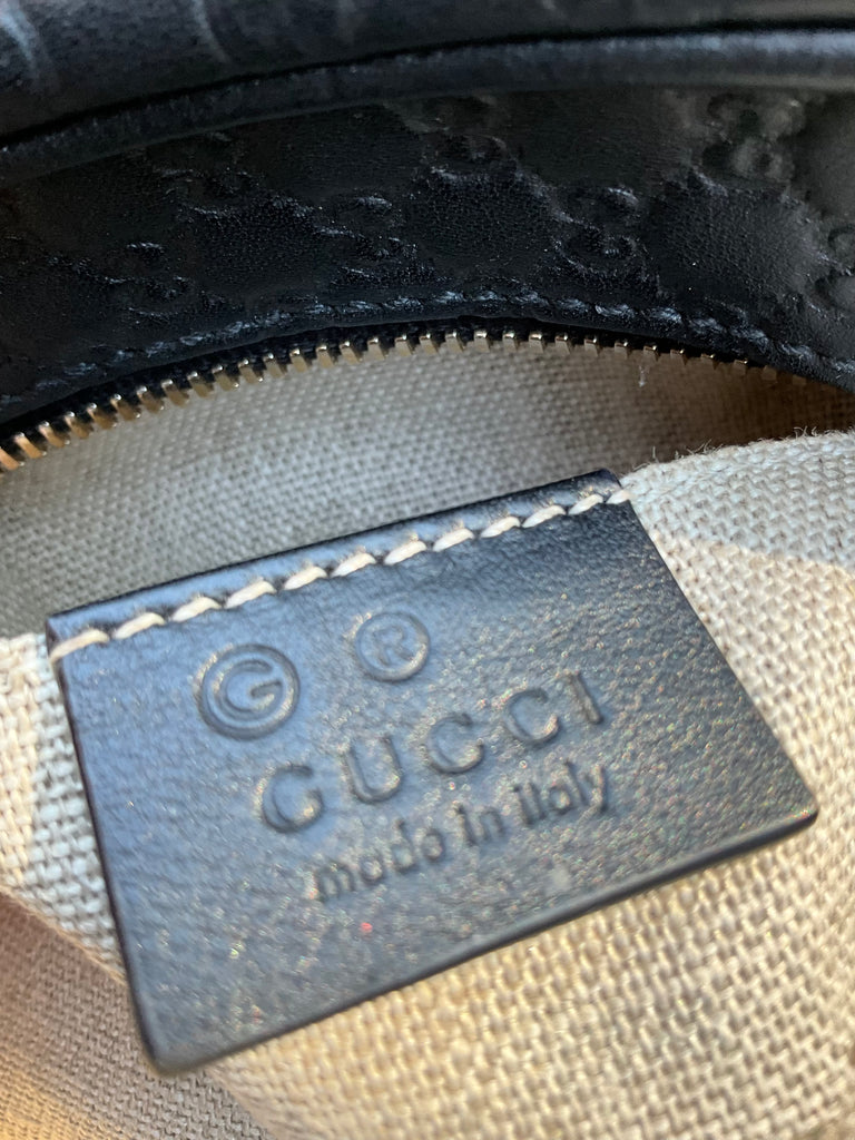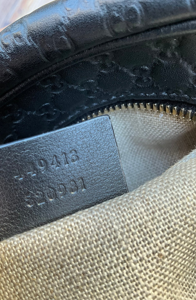 - Chic cross body bag crafted of microguccissima monogram leather in black.