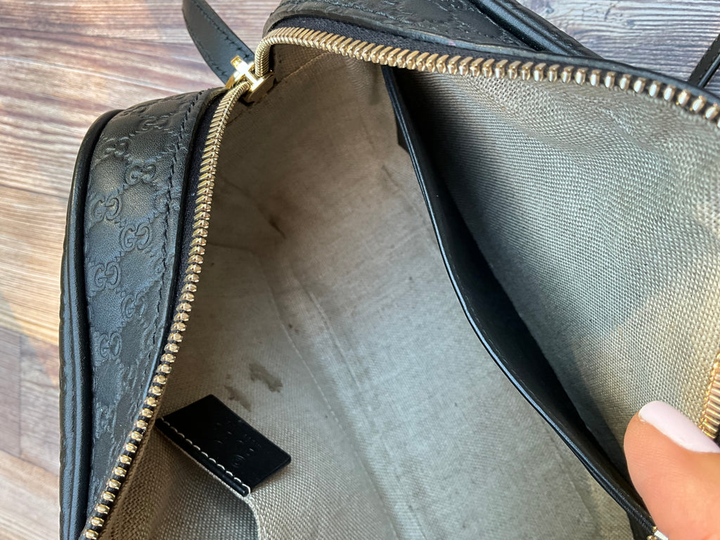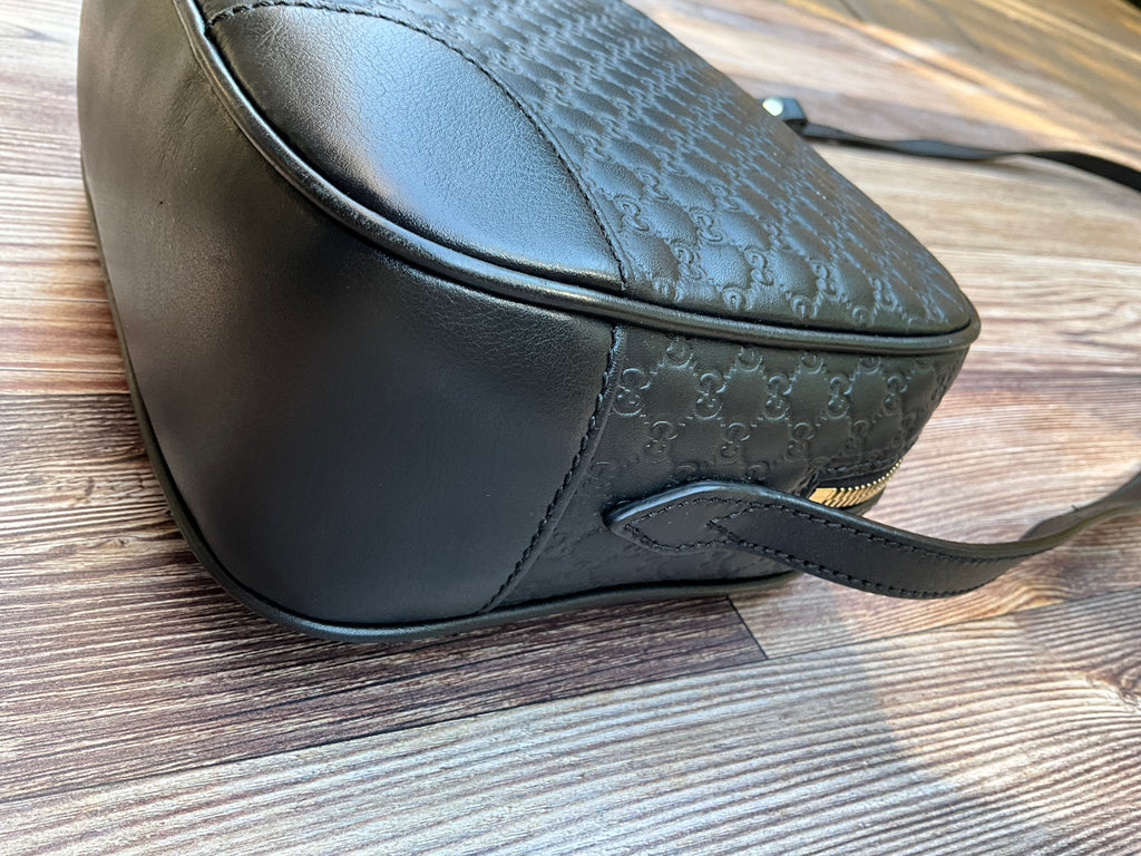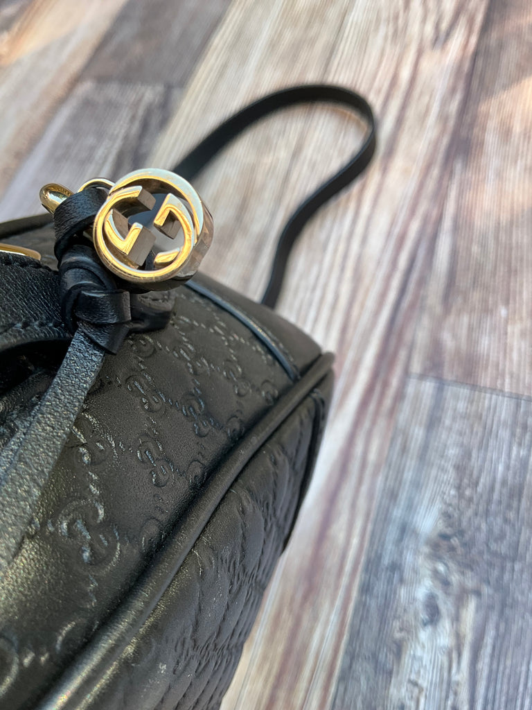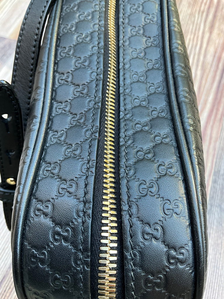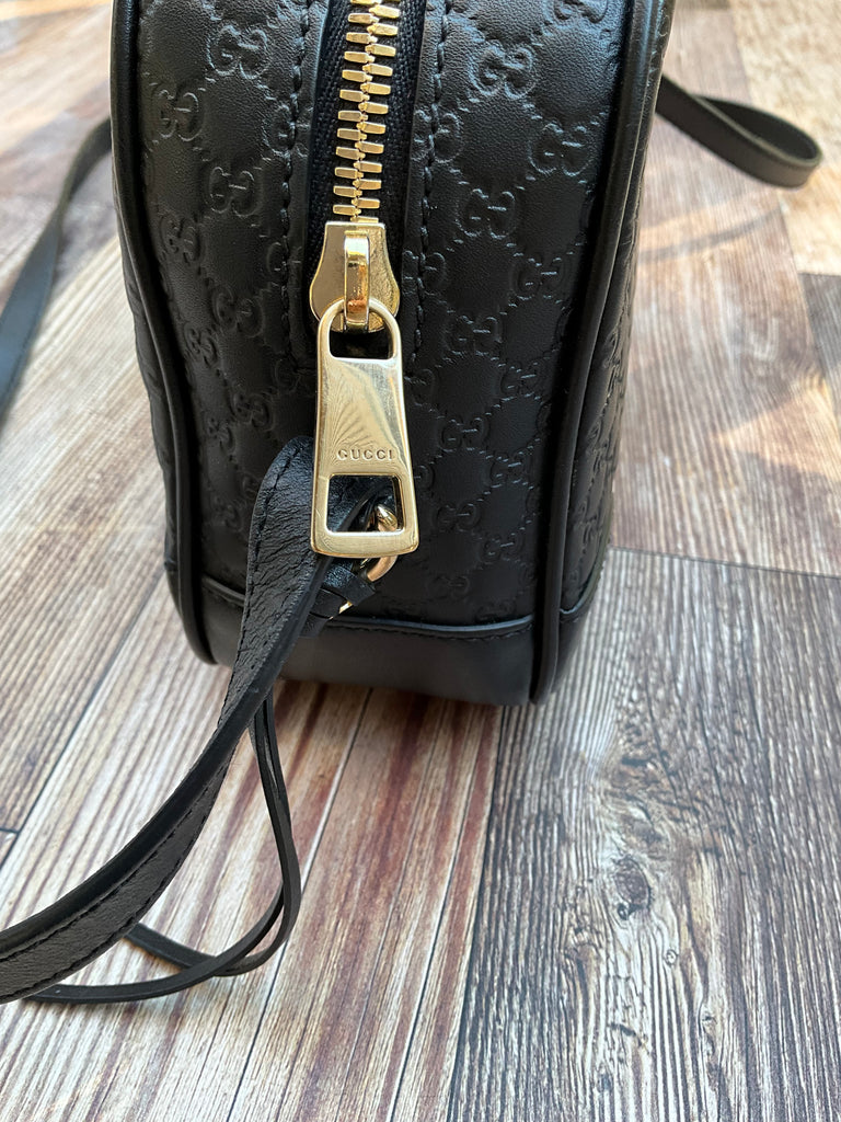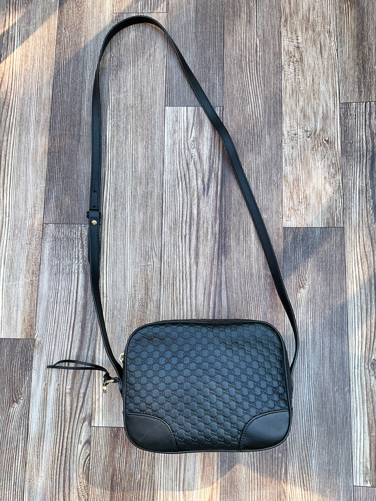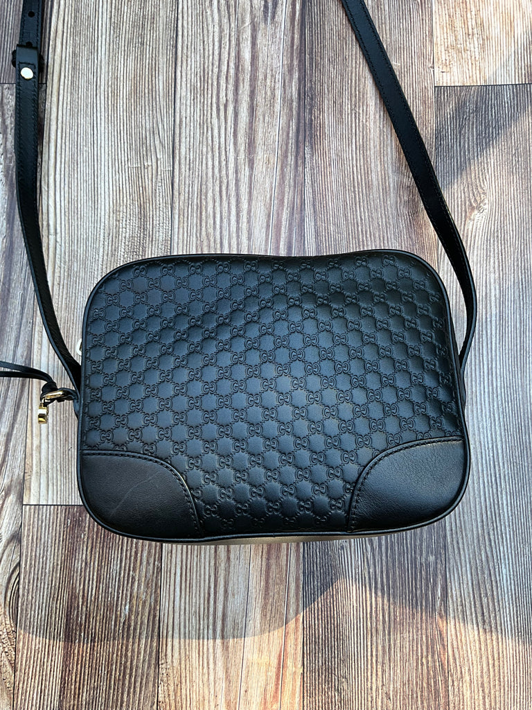 - GUCCI Microguccissima Mini Bree Messenger Bag in Black.
