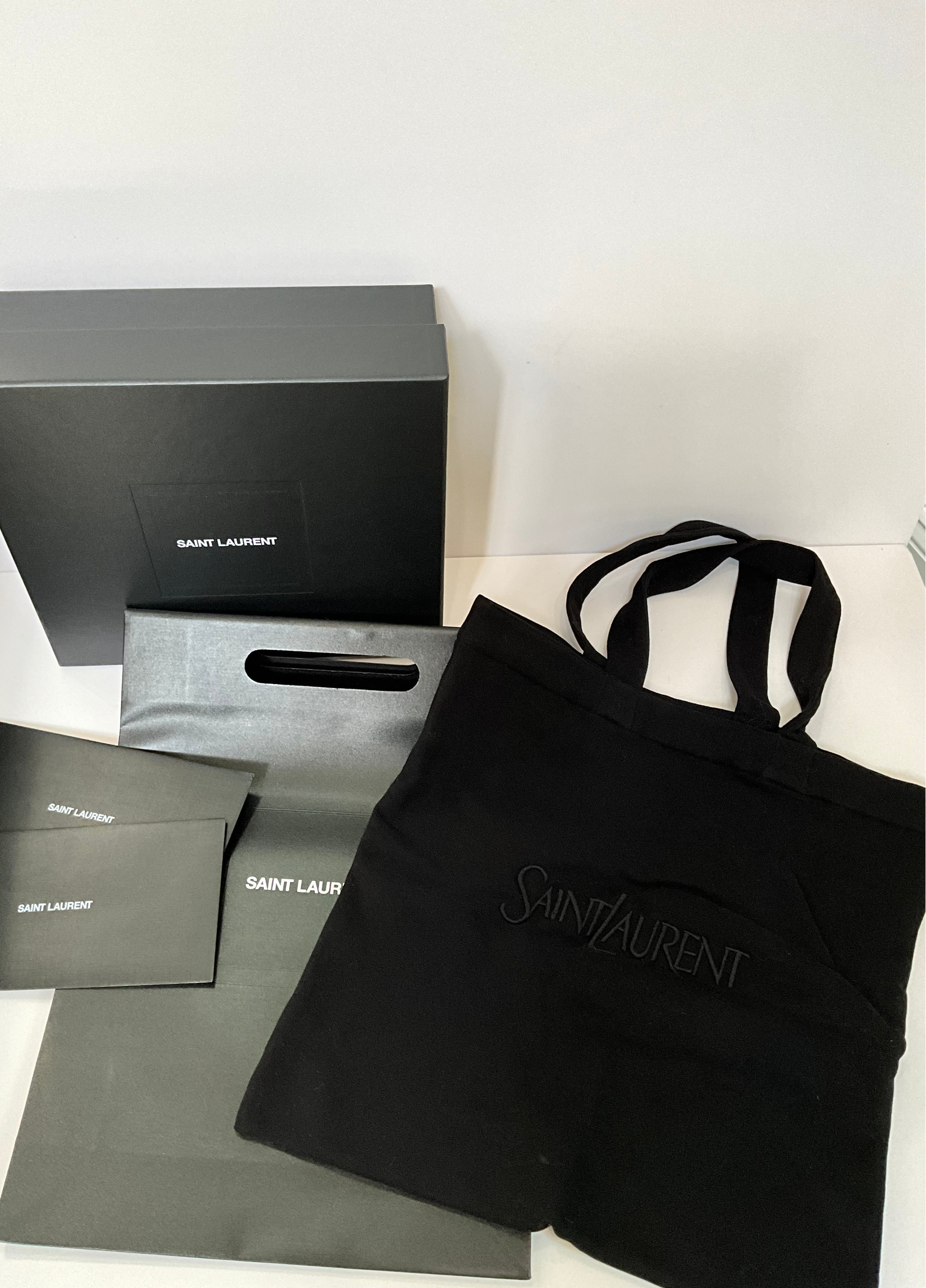 YSL TOTEBAG EMBROIDERED WITH THE SAINT LAURENT SIGNATURE.