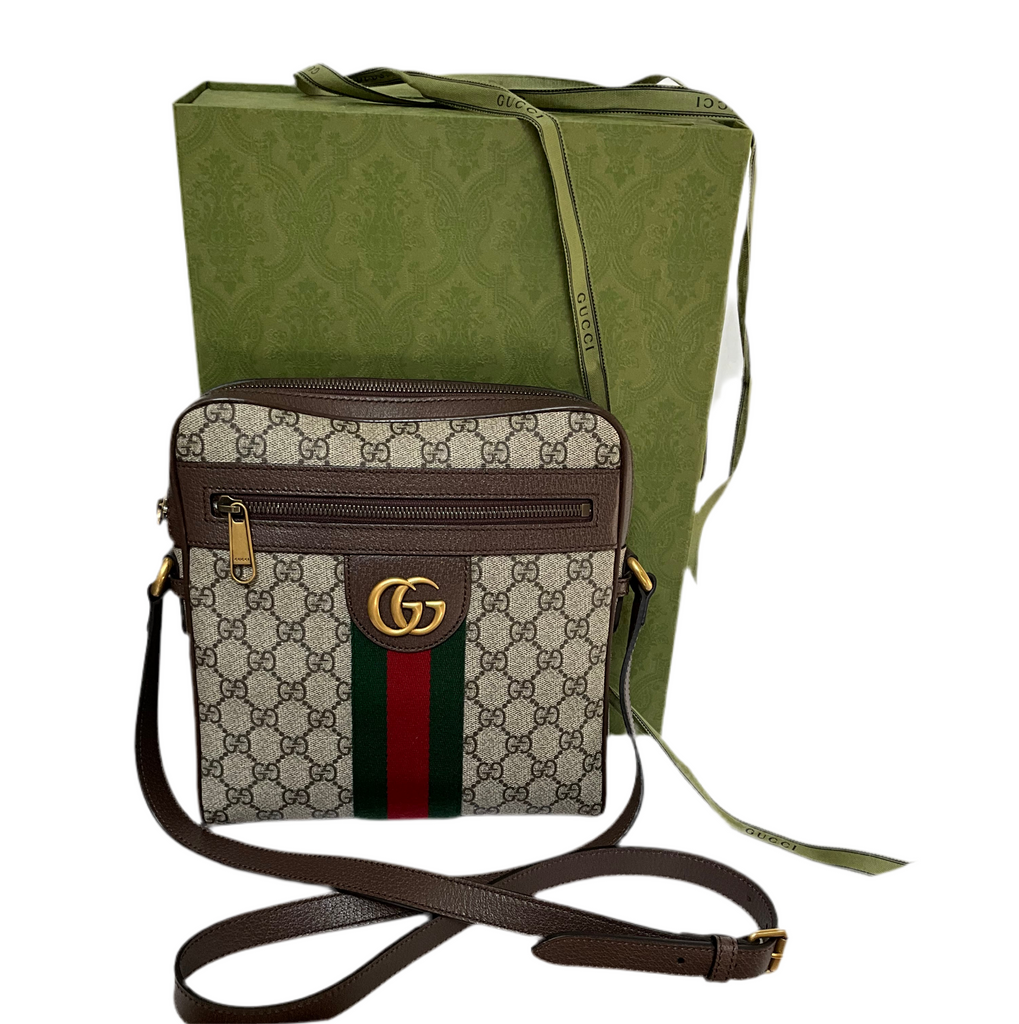 GUCCI SUPREME COATED CANVAS VINTAGE OPHIDIA MESSENGER CROSSBODY BAG