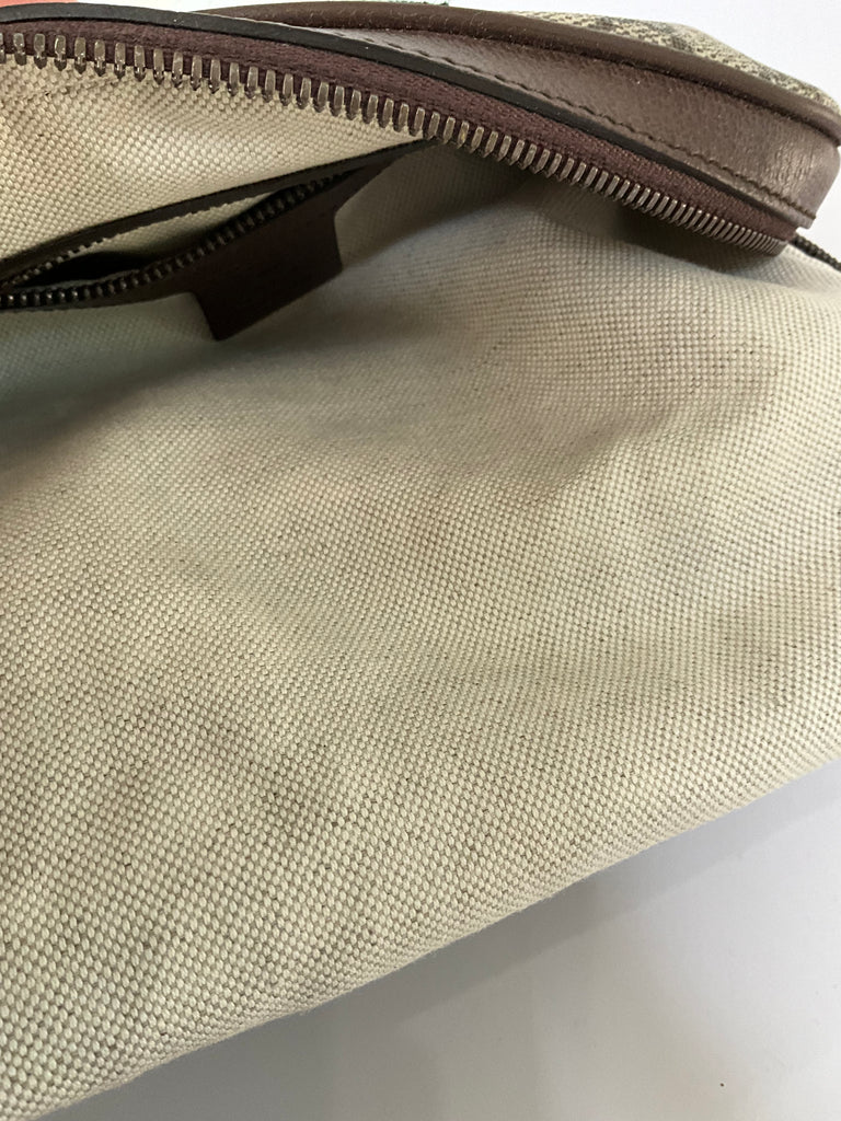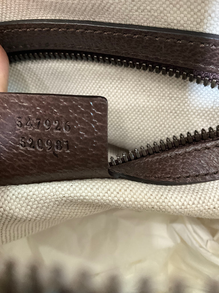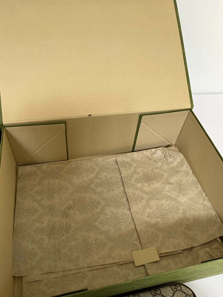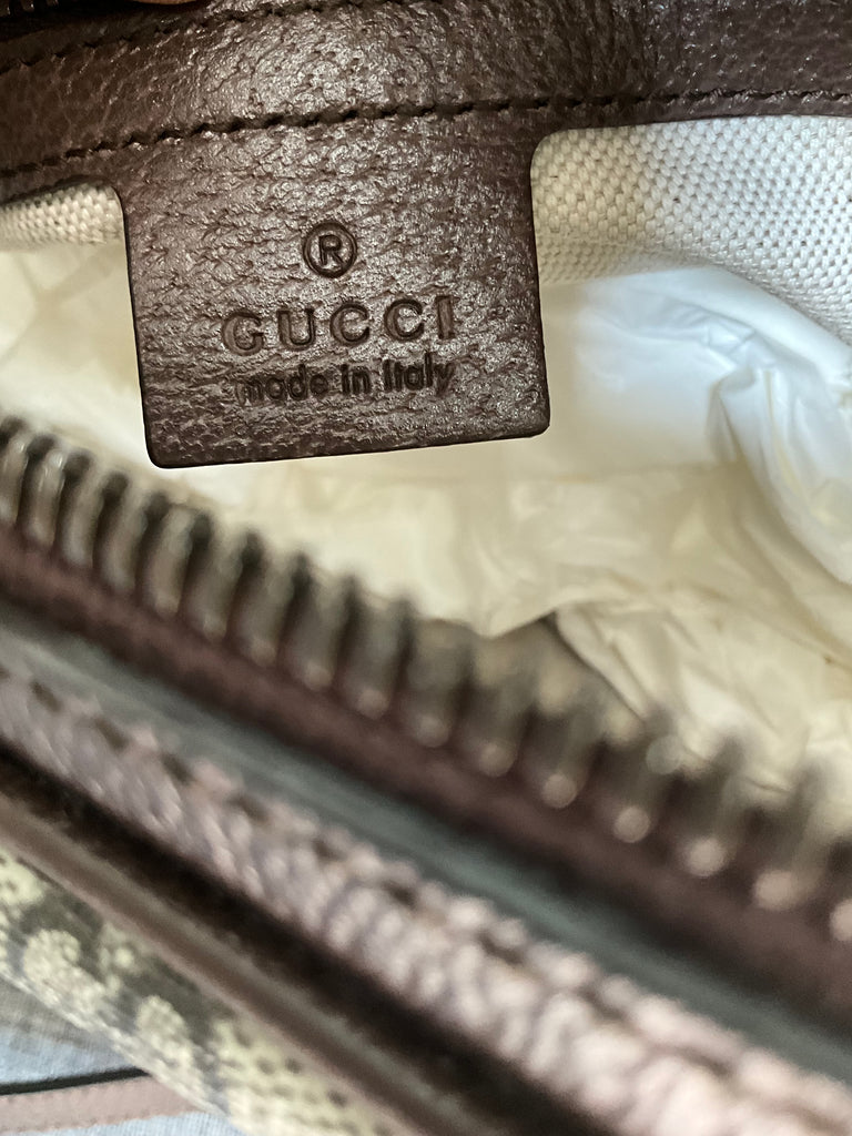 - Crafted from durable GG coated canvas and iconic webbing, topped with Double G hardware in an antiqued gold finish.