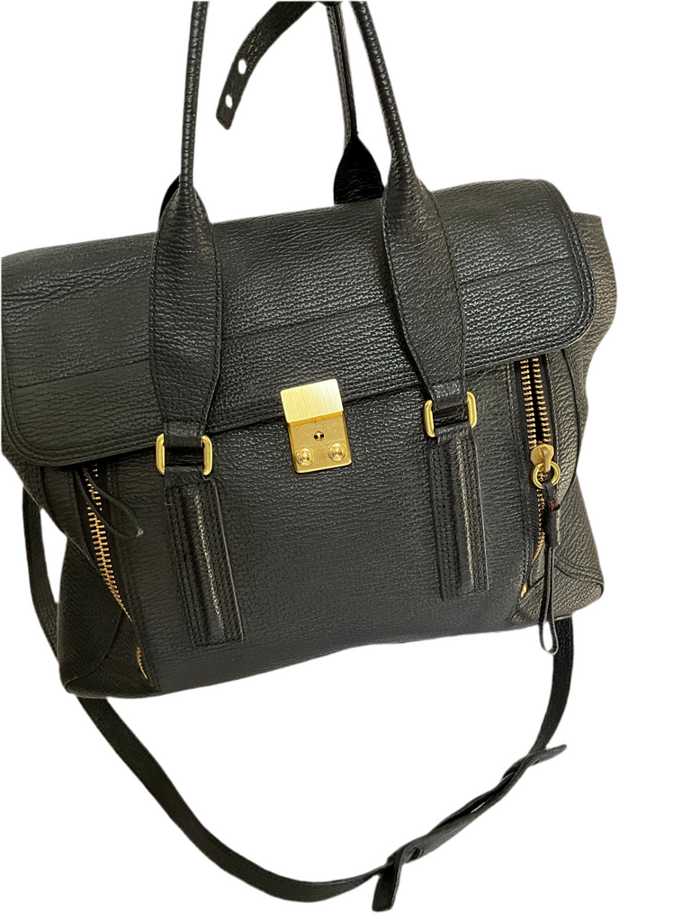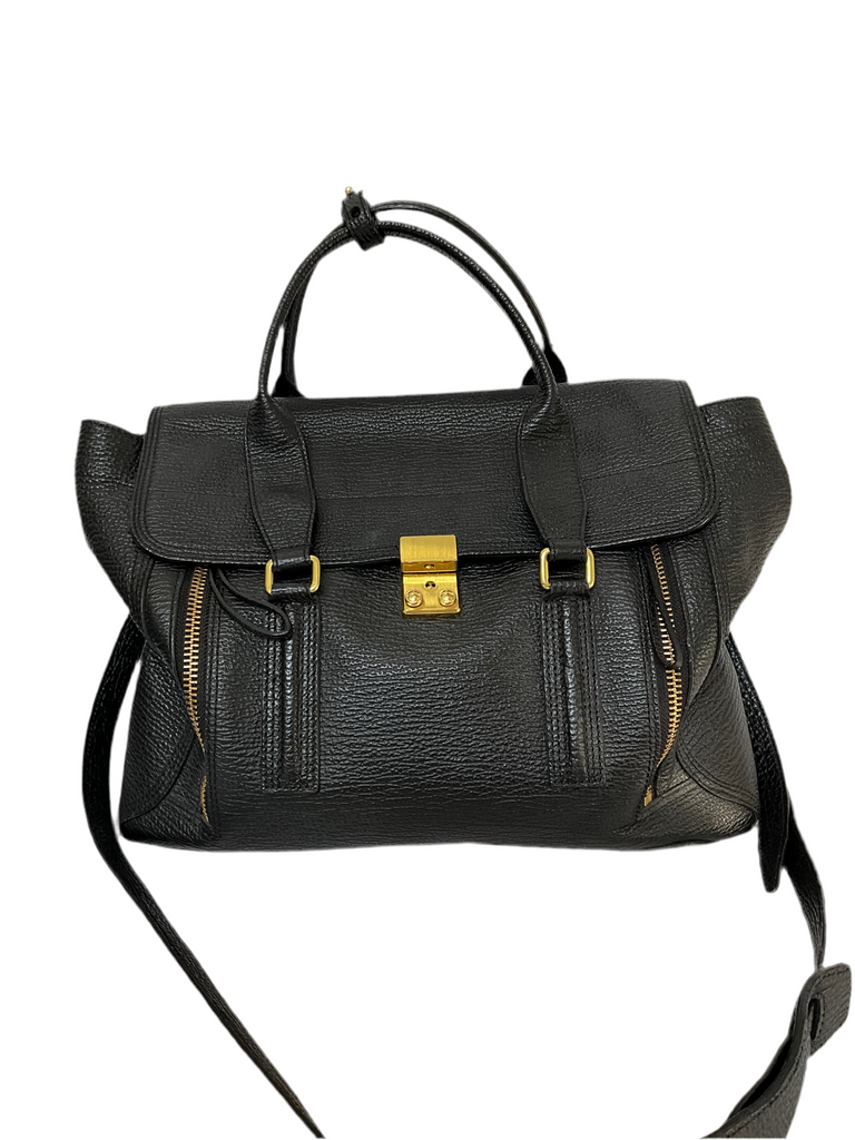 3.1 PHILLIP LIM BLACK LEATHER PASHLI HANDBAG LARGE TOP HANDLE BAG